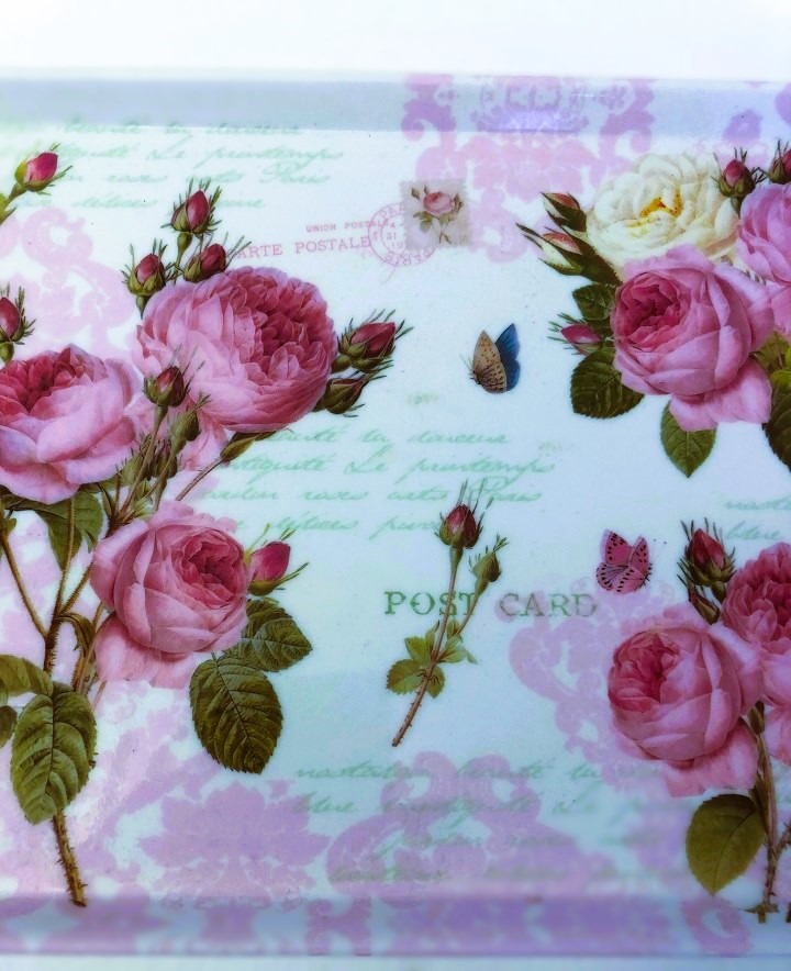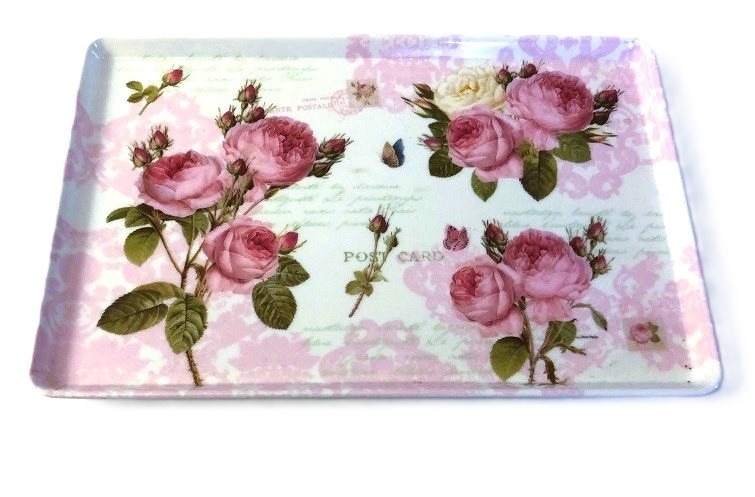 Dienblad vintage rozen / bloemen - 35x23cm - wit met roze