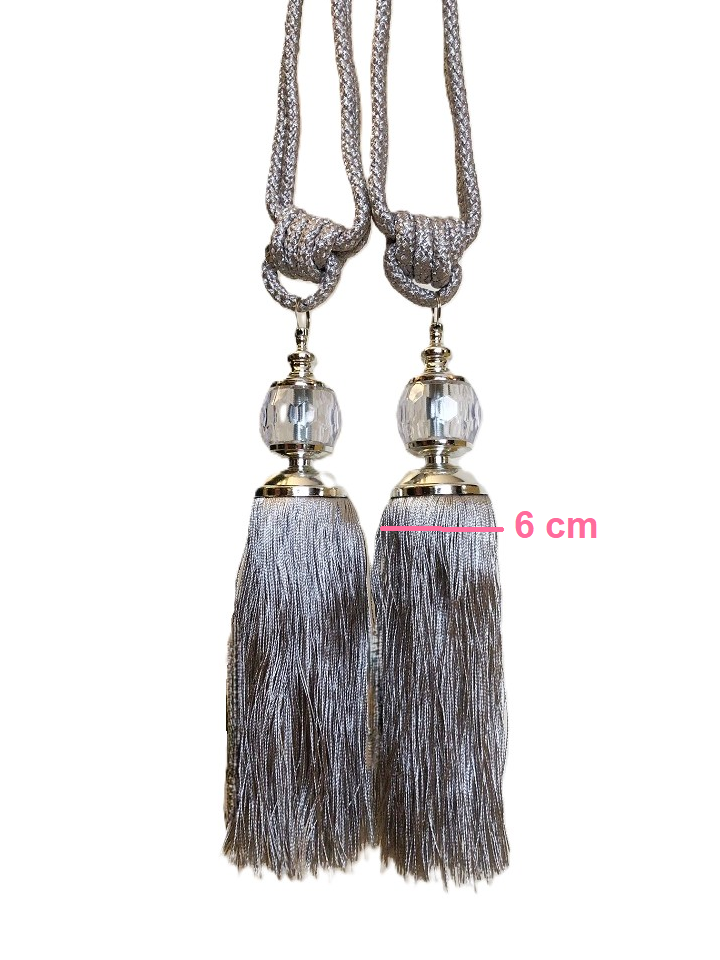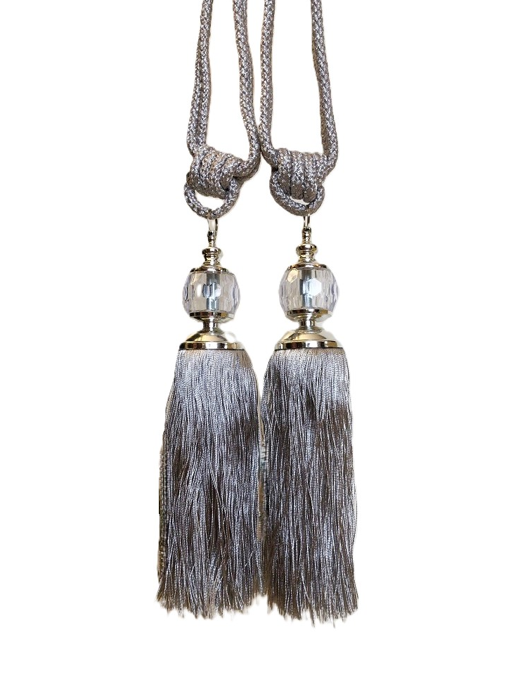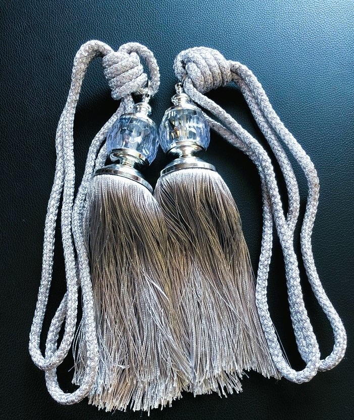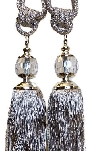 2x Groot Italiaanse gordijn kwasten / embrasses klassiek - zilver - licht grijs