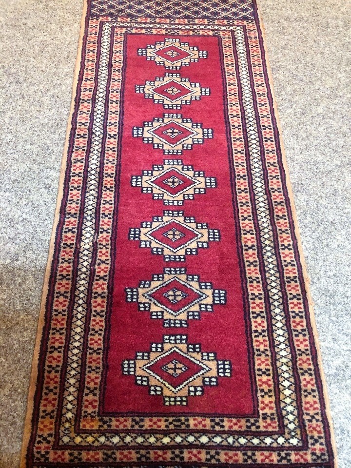 Vintage Oosters kleed origineel handgeknoopt Perzisch tapijt loper / kleed. Kleur: rood. Materiaal: wol. Conditie: in goede staat. Maat: 135x49 cm.