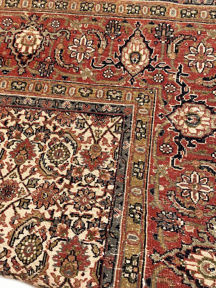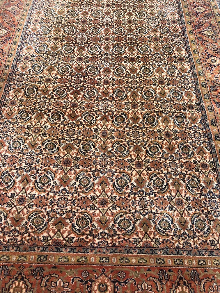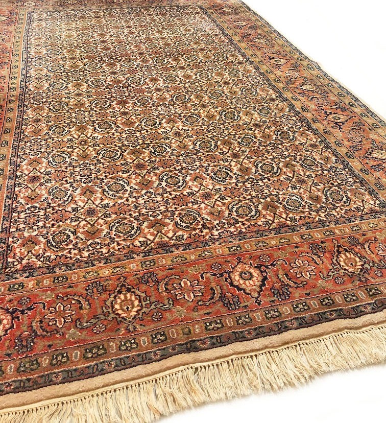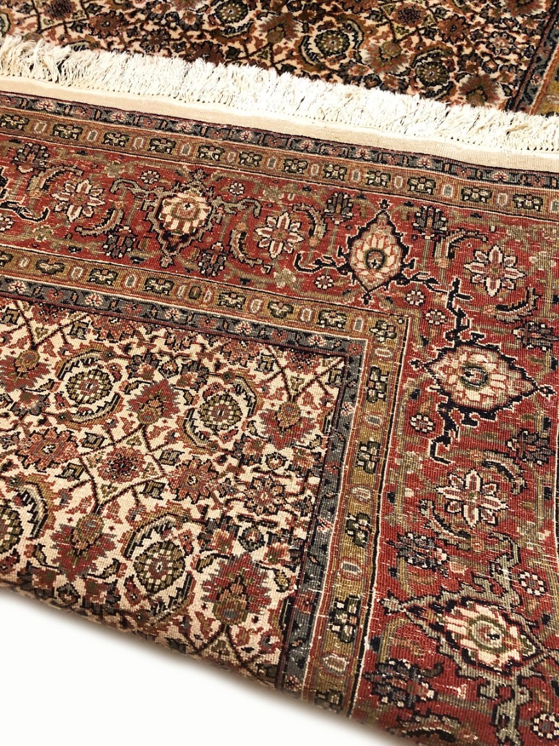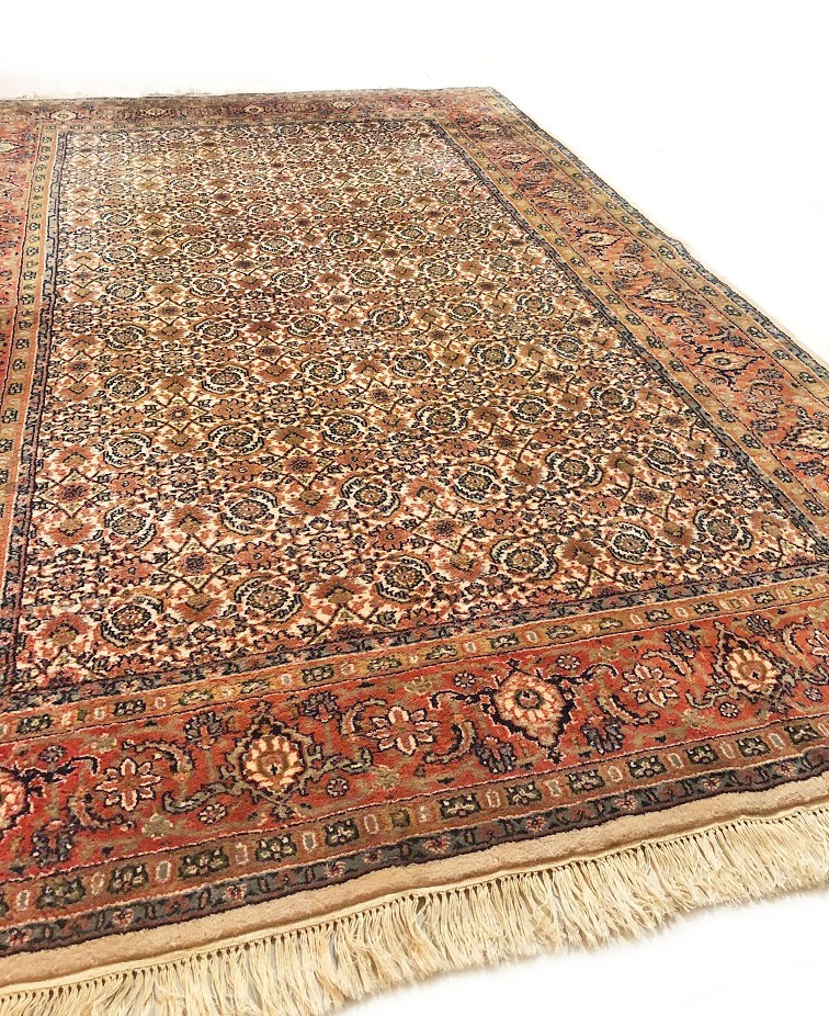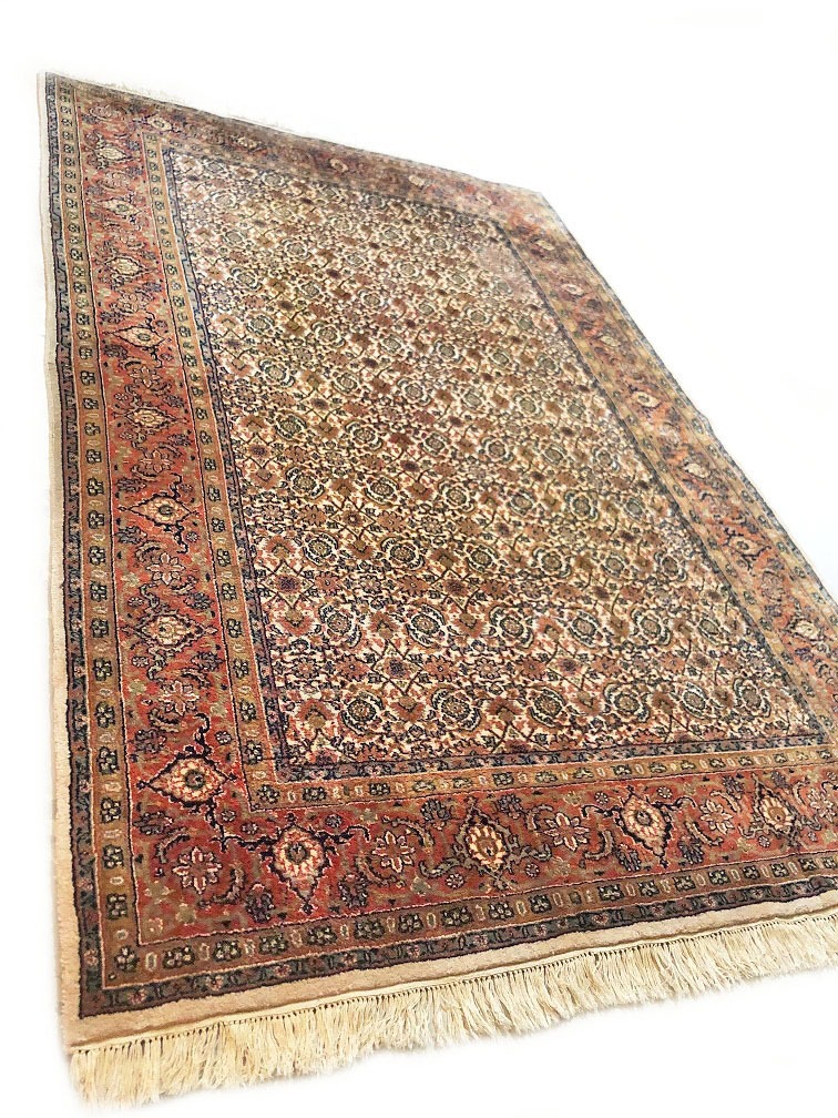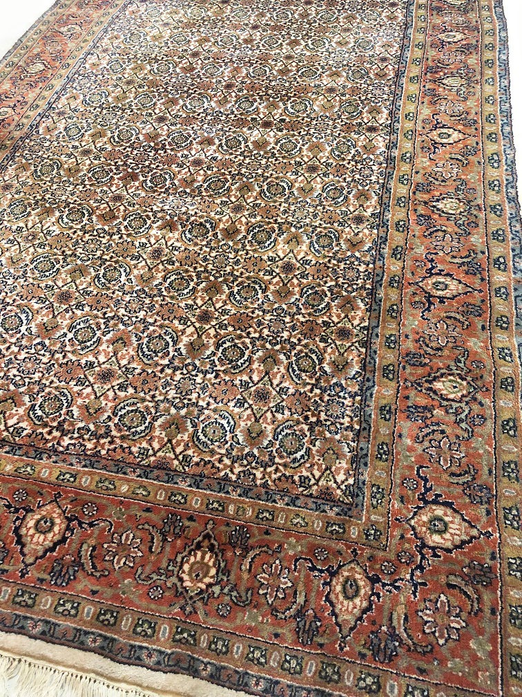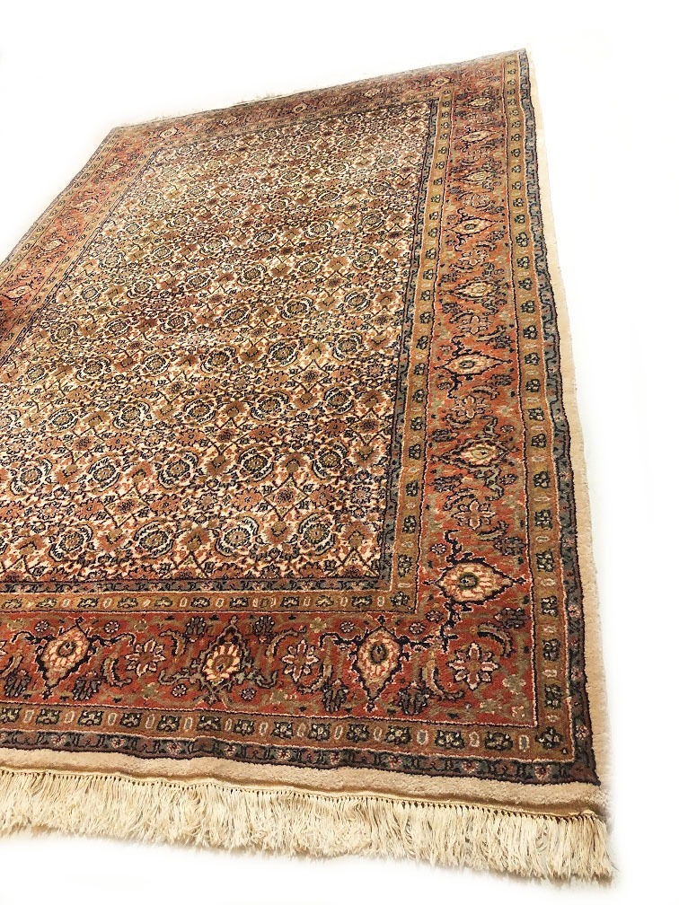 Mooie vintage kostbare origineel fijn handgeknoopt perzisch tapijt Moud Oosterse vloerkleed klassiek. Materiaal: gemaakt van wol. Kleur: bruin met oranje en creme. Herkomst: Perzië / Iran. Leeftijd ca. 30 jaar oud. Uit huisdiervrij en rookvrij. Maat: L 300 x B 200 cm. Deze tapijt wordt afgeleverd met certificaat van echtheid. Let op de kleur op de foto's kunnen iets afwijken door de licht val.