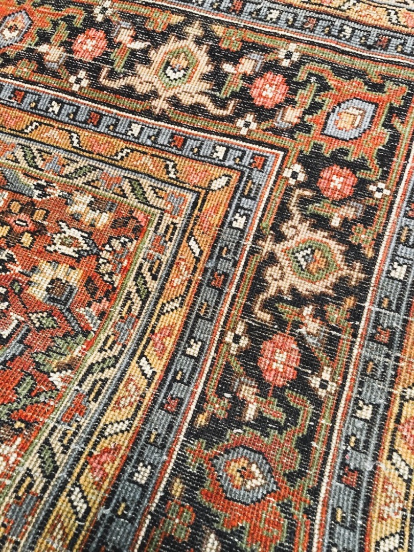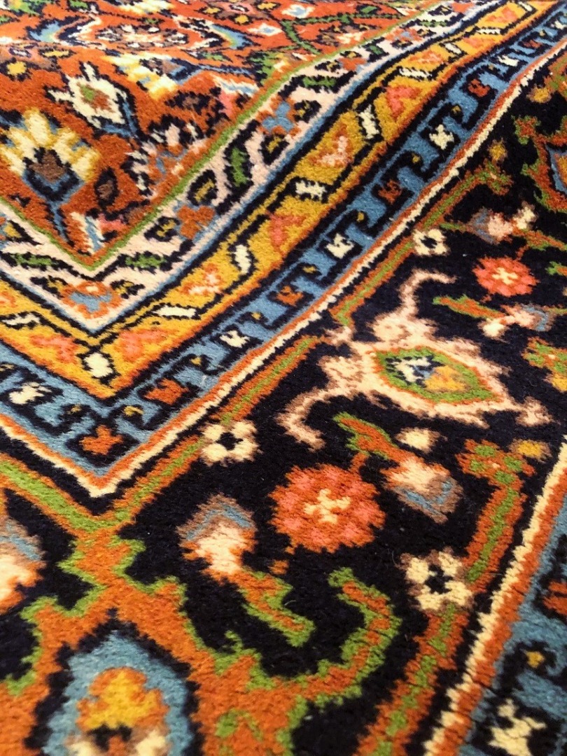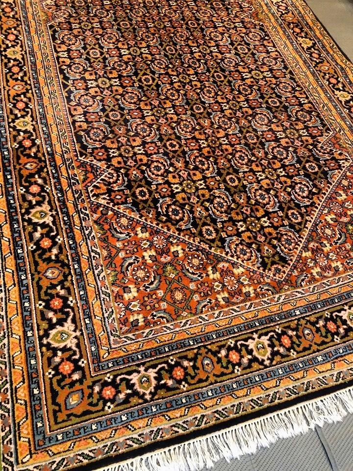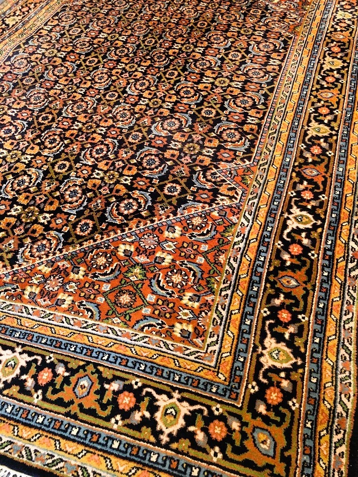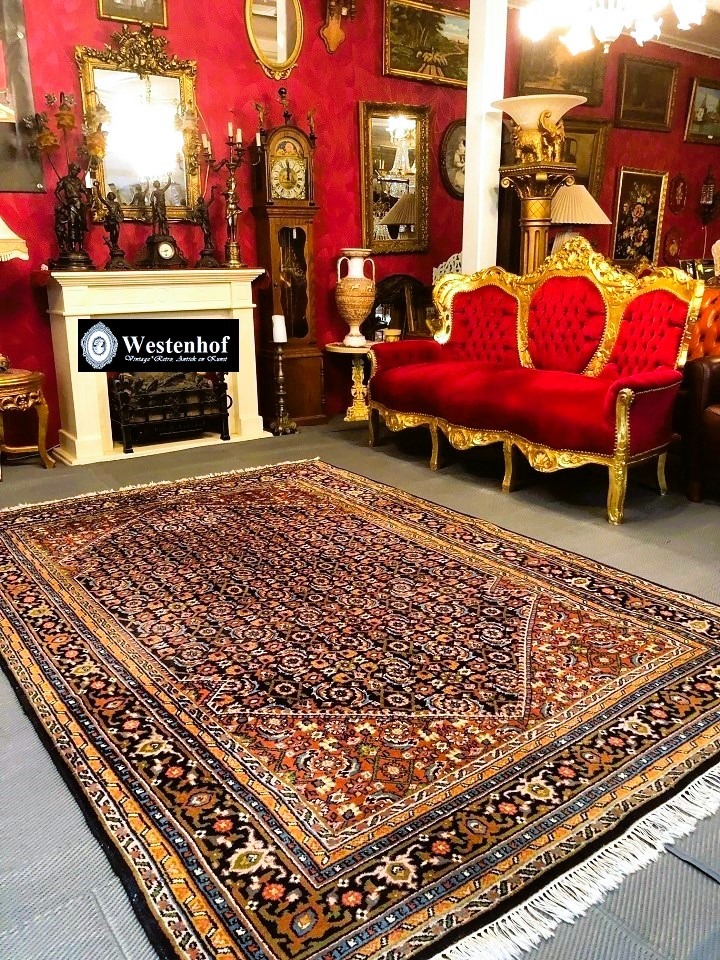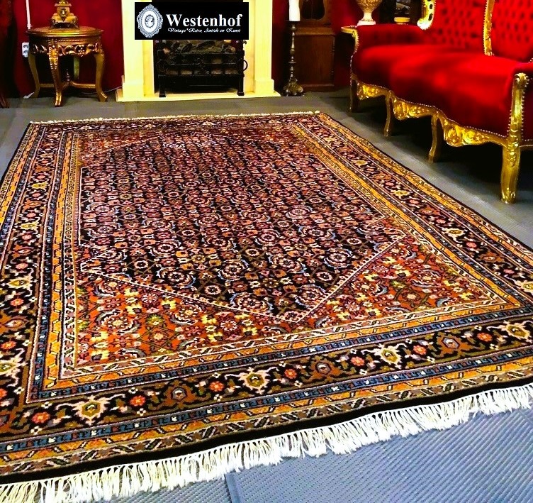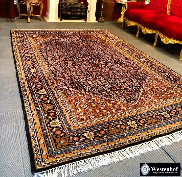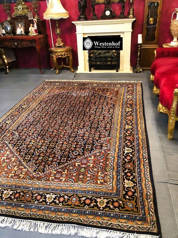 Zeer mooie vintage kostbare origineel fijn handgeknoopt Perzisch tapijt Bidjar Zanjan Oosters vloerkleed zacht en comfortabel van 100%wol materiaal. Kleur: donkerblauw, bruin en groen, antiek / klassiek medaille bloemenmotief / patroon. Herkomst: Perzië /Iran Conditie: in zeer goede staat, huisdiervrij en rookvrij. Maat: L 300 x B 200 cm. Nieuwwaarde van deze design, materiaal en maat: gemiddeld /tussen € 5.000 - € 6.000 of meer. Deze tapijt wordt afgeleverd met certificaat van echtheid.