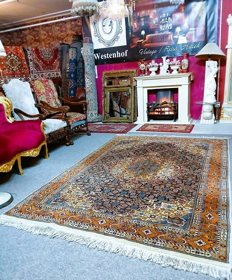Maat: 305x200 cm. Nieuwwaarde van deze design, materiaal en maat: gemiddeld /tussen € 5.000 - € 6.000 of meer. Deze tapijt wordt afgeleverd met certificaat van echtheid.
